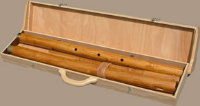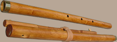 Lower priced fujara in key of A (150 cm / 59" long overtone bass flute ) is made from lathe-turned piece of upland ash-tree. It can be collapsed into 2 parts of 78 cm / 31" long (folded: 150 / 59" long). |